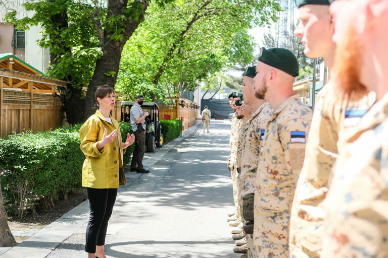 Avaldatud: 22 aprill, 2021Afganistanis töövisiidil viibiv president Kersti Kaljulaid kohtus täna Afganistanis pikemalt seal teenivate Eesti kaitseväelastega ning tänas neid teenistuse eest. Riigipea rõhutas kohtumisel, et Eesti osalemine Afganistani missioonil on muutnud Eesti liitlassuhteid oluliselt tugevamaks ning Eesti turvalisemaks.