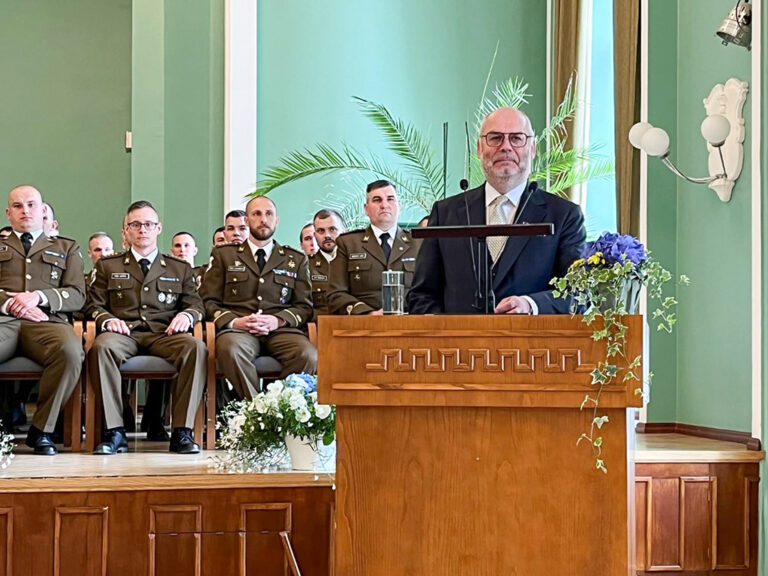 Avaldatud: 17 juuni, 2022Vabariigi President Alar Karis tõi täna Kaitseväe Akadeemia lõpuaktusel õppuritele peetud sõnavõtus välja mõtte laiemast ühiskondlikust vastutusest, mida kõik kodanikud kannavad oma riigi ees.