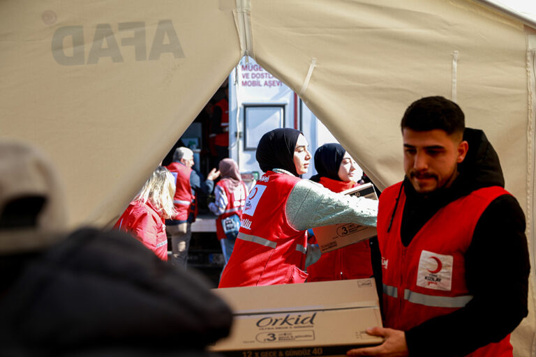 Türgi Punane Poolkuu on katastroofipiirkonnas avanud ligi 1000 abikeskust, sh kaheksa meditsiinipunkti, kus tegutsevad 3160 töötajat ja vabatahtlikku. Väga suur on vajadus vaimse toe järele – seda on praeguseks antud 63 tuhandele inimesele.