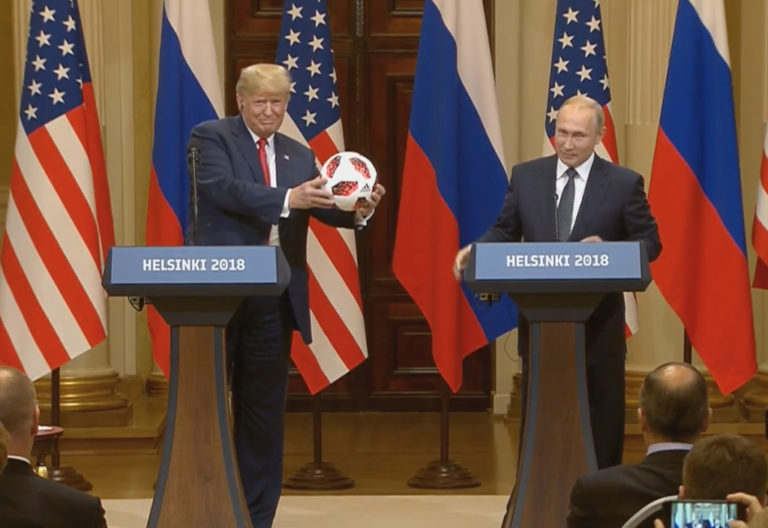Avaldatud: 16 juuli, 2018Vene president Vladimir Putin kinkis täna USA presidendile Donald Trumpile jalgpalli, kuna USA korraldab jalgpalli MMi 8 aasta pärast, aastal 2026.