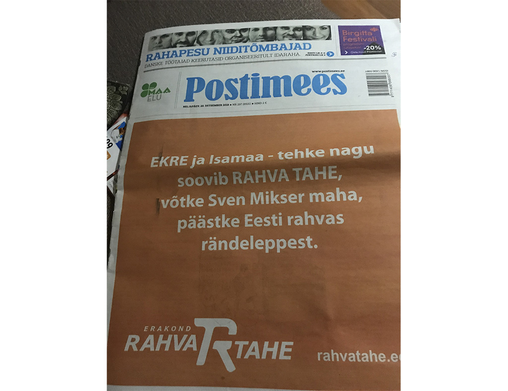 Nüüd on rahvas pöördunud Postimehe esikülje kaudu Isamaa ja EKRE poole, et Sven Mikser välisministri kohalt maha võetaks.
