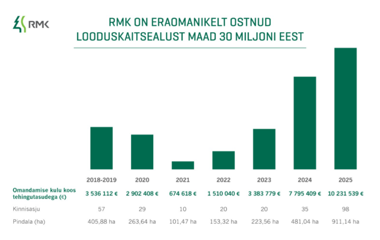 RMK on eraomanikelt ostnud kaitsealuseid maid 30 miljoni euro eest