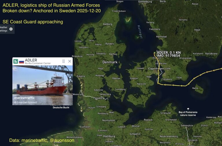 Avaldatud: 21 detsember, 2025Rootsi tolliteenistus, piirivalve ja politsei pidasid ööl vastu tänast pühapäeva 21. detsembrit kinni sanktsioonide nimekirjas oleva Vene kaubalaeva Adler pärast seda, kui laev oli Höganäsi lähedal Rootsi territoriaalvetes ankrusse heitnud.