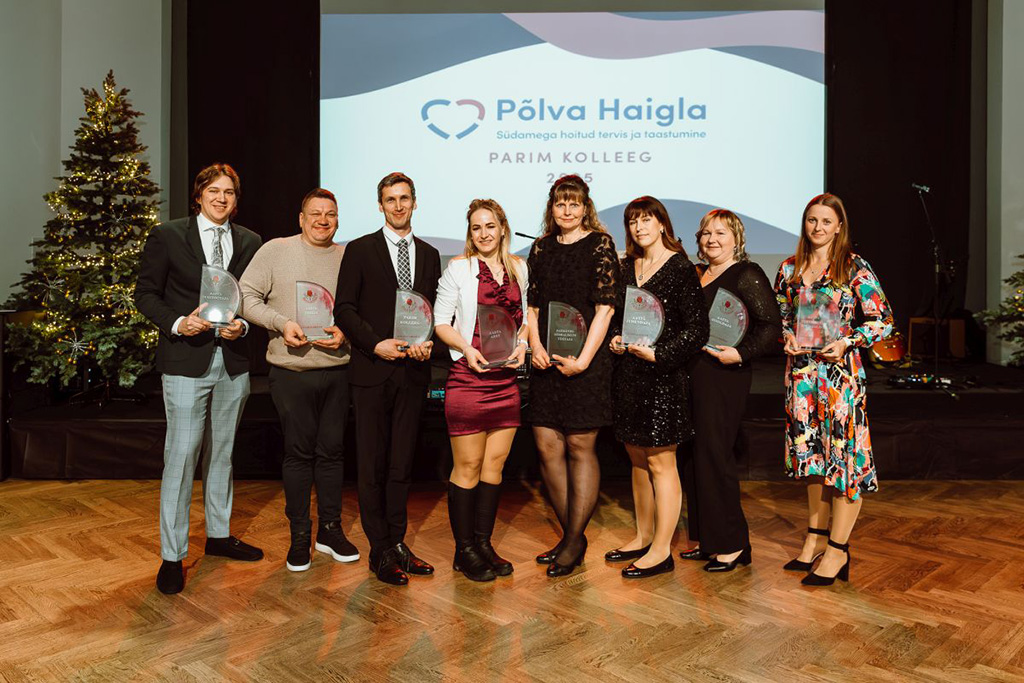 Ühispildil vasakult: kommunikatsioonijuht Madis Perli (aasta tugitöötaja), haldustööline Tarmo Haabma (aasta tulija), taastusravi osakonna juhataja Pärt Prommik (parim kolleeg), sisearst ja siseosakonna juhataja dr Katrin Keerma (aasta arst), õendusabi osakonna juhataja-õendusjuht ja kirurgia osakonna õendusjuht Krister Matto (aasta patsiendisõbralikum töötaja), siseosakonna õendusjuht Sirli Kiilo (aasta juhendaja – terve Siseosakond), taastusravi osakonna hooldaja Pille Tenno-Täpsi (aasta hooldaja) ja taastusravi osakonna teenusekoordinaator-füsioterapeut Hannagret Luks.