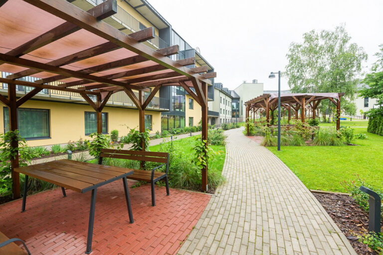 Eakatekodu Tartu Eluringikeskus. Eakatekodu väliala on lahendatud toimiva tervikuna, kus õues leidub tegevust kõigile – nii aktiivsetele rohenäppudele kui ka muidu nautlejatele. Aiakujundusse on andnud arvestatava panuse eakad ise, kes kasvatavad kasvuhoones meelepäraseid köögivilju ja hoolitsevad lillepeenarde eest. Nutikalt on haljastusse integreeritud toidutaimed.