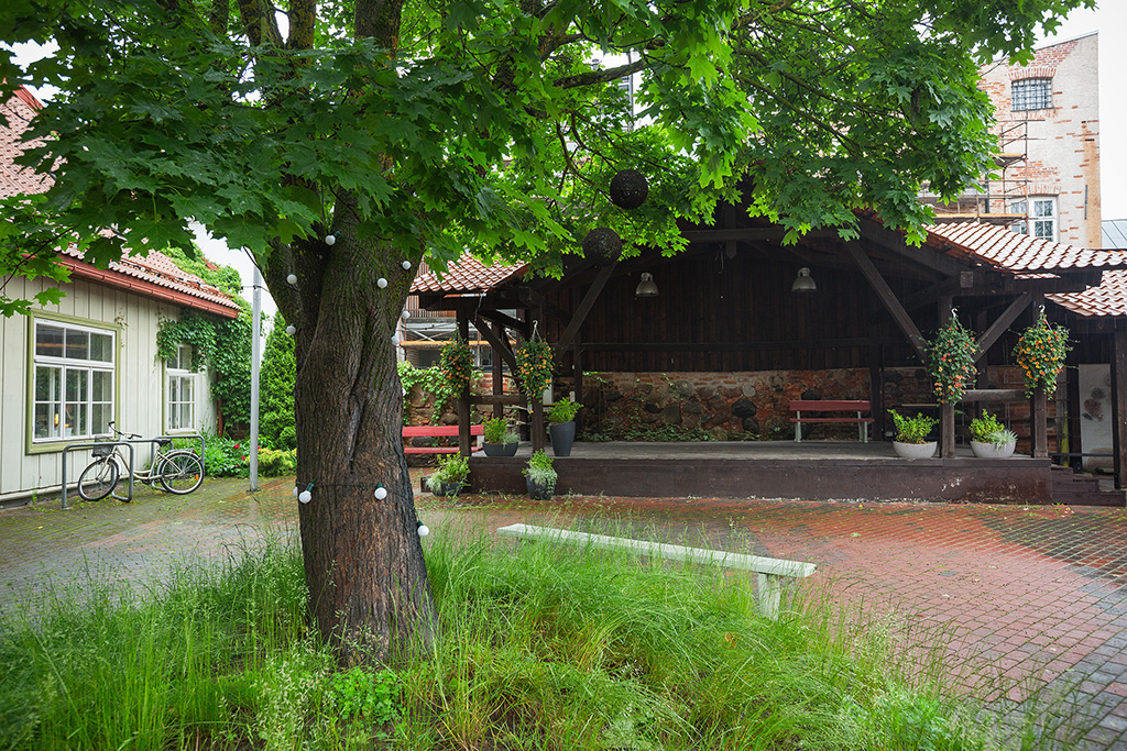 Antoniuse õu. Õue kaunistab konteinerhaljastus, mis pakub lehe- ja õieilu ning loob meeleolu erinevatele sündmustele. Alale paigutatud täiendav haljastus seob platsi hoonega ühtseks tervikuks pakkudes vanalinnas unikaalset sündmusruumi. Õuest leiab disainereid tutvustava näituse, välilava ja rohkelt istumiskohti. Väliala südames on vana vaher, mis kõrgub õue kohal ja pakub varju väikese vihmasabina ja lõõskava päikese eest.