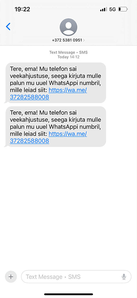Avaldatud: 3 september, 2025Selline pätikiri liigub, kus palutakse emal kirjutada WhatsAppi numbril.