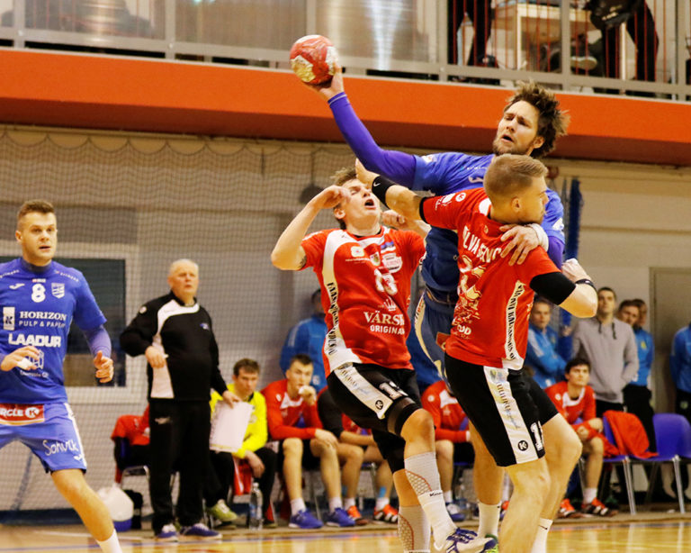 Karikakaitsja peatreener Kalmer Musting tegi julgelt vahetusi ning juba avapoolajal said käe valgeks kümme pallurit, teiste seas ka Varusk. Poolajasireeniga tabas Carl-Eric Uibo ja viis Serviti 16:7 ette. Anton Borovski viskas küll teise pooltunni esimese värava, ent peagi oli tablool põlvalaste kümneväravaline edu.