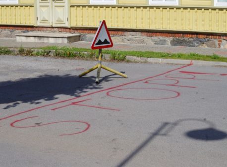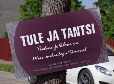 Teelõigu alguses oli puu külge kinnitatud plakat teatega: „Tule ja tantsi. Tõeline folkloor on meie aukudega tänaval.” Sõiduteele oli värviga pihustatud „Stopp!” ning paigaldatud ebatasasest sõiduteest teavitav liiklusmärk.