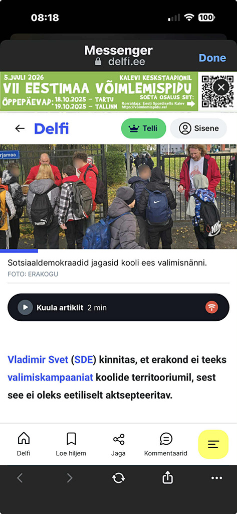 Avaldatud: 9 oktoober, 2025Võrus sahistatakse, et Automaksu-Antid on võimust ilmajäämise kartuses alustanud uut pressingut, ujutades koolimajad üle poliitreklaamiga.