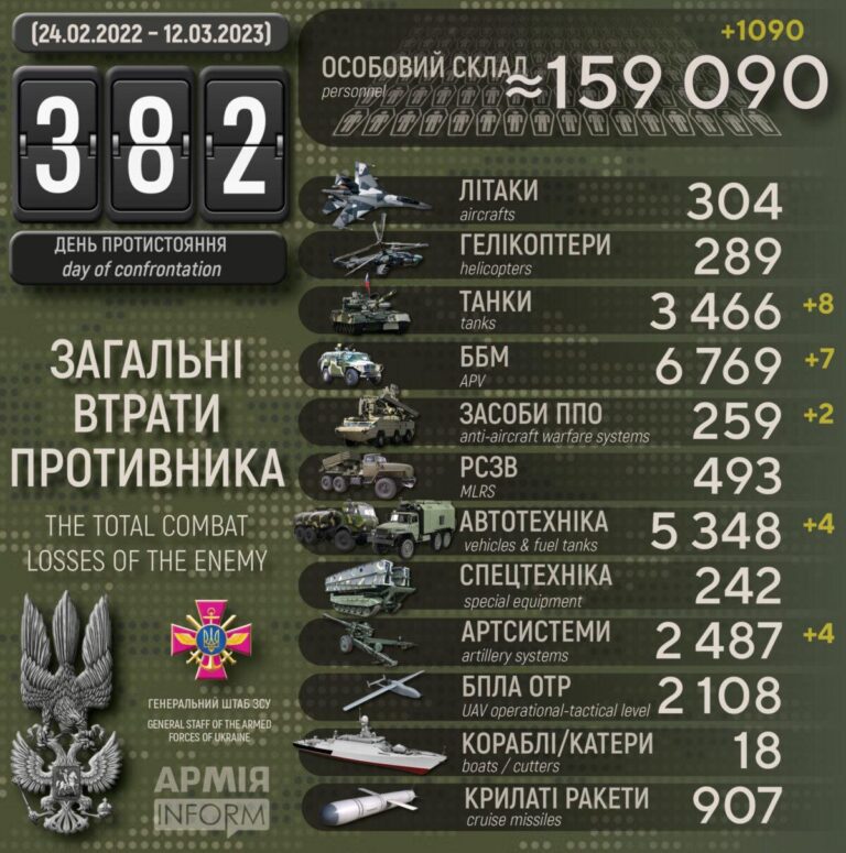 Bahmut: vene poole rünnakute arv ja intensiivsus jätkuvalt kõrge ning langemise märke ei näita. Pisu kasvab soomuse hulk rünnakutel, aga jalavägi jätkab ikka veel tihedalt kolonnis ründamist ja seetõttu juba paari mürsuga enamus rühma oma eksistentsi lõpetab. Eks see ole puuduliku väljaõppe süü ja juhtimise kvaliteedist ei räägigi. Võimalik, et miskit joovastavat ka antakse, sest igasugune ohutunne madalale tasemele on läinud. Põhja poole eile edeneda ei suudetud, kuigi kogu rinde ulatuses prooviti. Ei suudetud edendada ümberpiiramise põhjapoolset jätku ning pisu vene pool kurtis, et Ukraina olla siia mingeid reserve toonud ja teeb vasturünnakuid. Bahmuti linnas eile vist tegi vene pool esimese katse saada üle Bahmutka jõest ja olla see seltskond tagasi löödud. Põhjasuunal istutakse kinni tööstusala serval, aga lõunaküljest paar tänavahet siiski ühes lõigus edasi saadi. Edelapoolne ümberpiiramise suund ka seisab ja vaatamata terve päev hakklihamasinasse soldatite saatmisele edasi ei saada. Tundub juba, et vene pool loodab, et saadab surma nii palju soldatid vaid selleks, et äkki lõppeb Ukrainal lihtsalt moon otsa. Olukord siiski raske ja kaalukausi kaldumine siia või sinna ikka veel võimalik. Liigub õnneks ka kõlakaid, et vene dessantnike read hõrenevat peaaegu sama kiirusega kui wagneri omad…