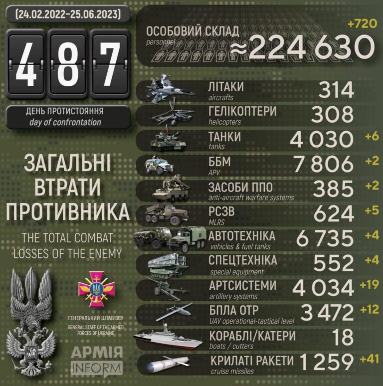 5. Bahmut: Ukraina hakkas aktiivsemalt suruma nii ümber Bahmuti kui ka otse linna peale. Hetkel erinevate blogijate info ning kinnitus Maljarilt (Ukraina asekaitseminister): Ukraina relvajõud alustasid laiaulatuslikku vasturünnakut Bahmuti ümber ja kõigis suundades olla edenetud. Tundub, et Bahmuti linnas saadi mõned läänepoolsed kvartalid kätte, läheneti mõnisada meetrit Klisiivka külale ning lääne pool Siverski Donets-Donbass ei tohiks vene üksusi olla ja võimalik, et esimesed Ukraina üksused on jõudnud Kurdjumivkasse. Eks homseks targem. Kuna siin suunal pole vene poolel nii suurt kaitserajatiste süsteemi, siis kaitse kokkulangemine tekib suurema tõenäosusega ja võimalik, et seetõttu siin Ukraina rohkem suruma hakkab.