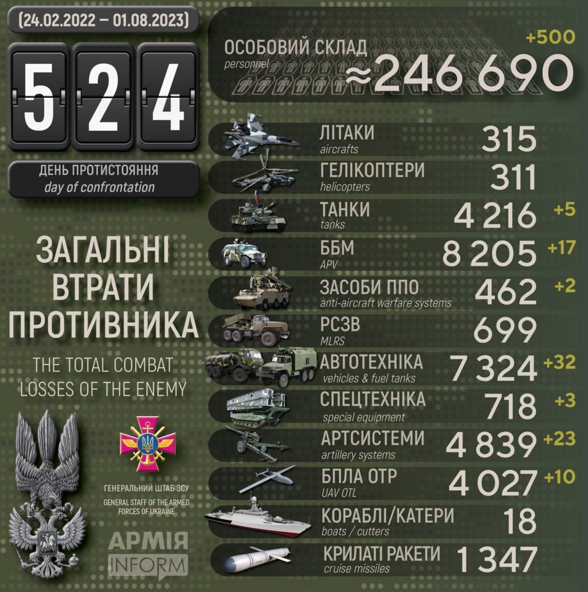 1. Eile öösel tabas vene pool ballistiliste rakettidega Krõvõi Rihi linna, tabamuse sai ka üks 9-kordne kortermaja. Eile õhtuse seisuga oli vähemalt 6 hukkunut ja üle 50 haavatu. Kahjuks on hoones suur varinguoht ja suuri betoonitükke alla sajab, sestap kahjude hindamisega läheb veel aega. Nagu ikka, teatab vene pool vaid sõjalistest sihtmärkide tabamisest. Eks pisu võib-olla meelevaldselt kipub arvama, et kõik Ukraina inimesed on kremli jaoks legitiimne sihtmärk. Lisaks jätkati üleeile alanud uut Harkivi linna pommitamise seeriat. Seekord siis droonidega. Plahvatusi küll kostus, aga varahommikuks tabamustest täpsem info puudus. Küll läks suures osas linnas ära elekter. Piiriäärsete ja rindelähedaste asulate tihe pommitamine jätkus. Igapäevaselt pole kirjutanud Hersoni pommitamisest. See lihtsalt sama tavaline kui kuupäeva vahetus. Seni pole kõik elanikud tahtnud linnast lahkuda…