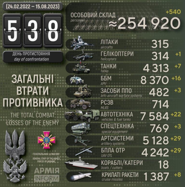 Ukraina 15. august 2023: