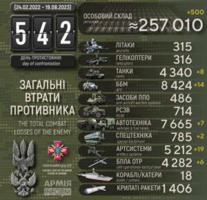 Vastase kaotused. Allikas: https://armyinform.com.ua/