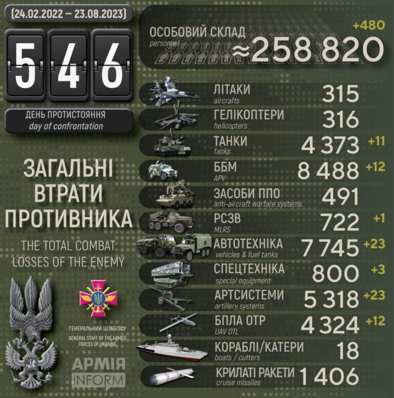 Ukraina 23. august 2023: