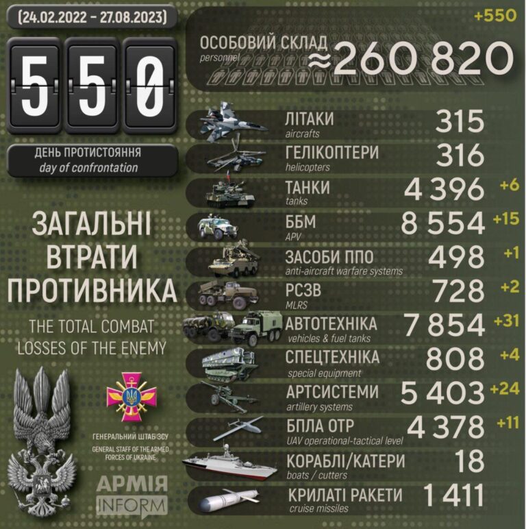 Ukraina 27. august 2023: