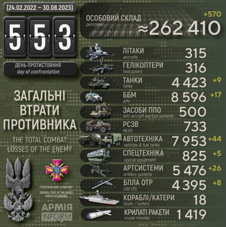 Ukraina 30. august 2023: