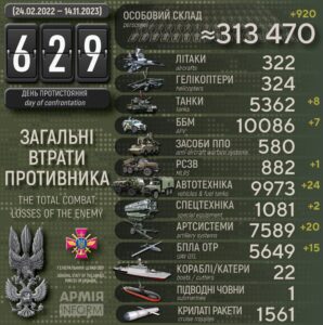 Vastase kaotused. Allikas: https://armyinform.com.ua/