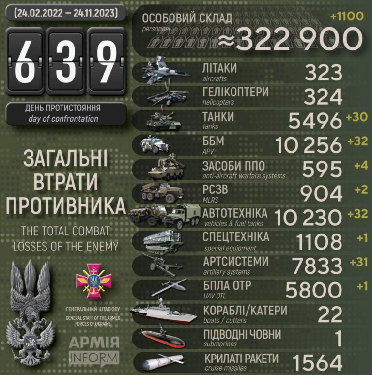 3. Kupiansk-Kreminna: rünnakute arvu tuntav langus jätkus, paar tugevamat rünnakut Kupianski suunal Sinkivka küla lähistel. Muutusi rindejoones polnud. Eks oodatakse maa külmumist, et siis suurema survega uuesti jätkata.