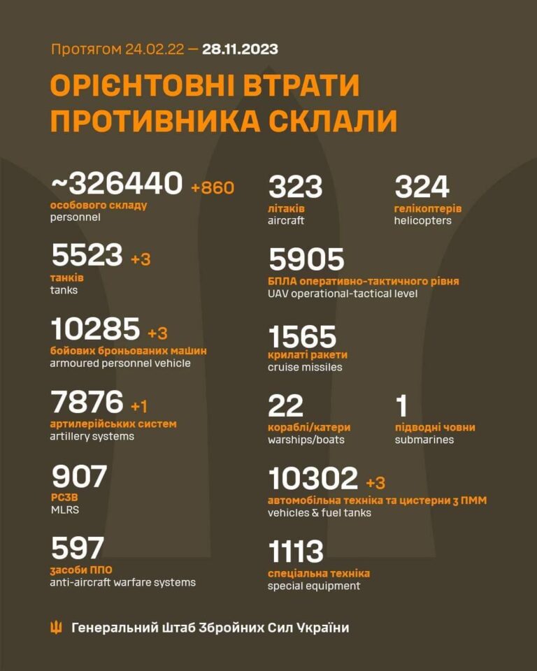 3. Kupiansk-Kreminna: u 15 rünnakut kogu rindel, enamus Kupianski suunal ja põhiliselt jalaväega, muutusi rindejoones ei tuvastanud.