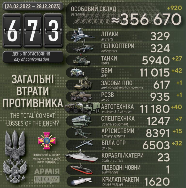3. Kupiansk-Kreminna: tugev vene poole rünnakutelaine nii rinde põhja- kui lõunalõigus jätkus. Sinkivka külla õnnestub vene poolel päevas isegi mitu kord sisse saada ja siis kaotustega sealt minema lüüakse. Siin suunal suudab vene pool pisu karistamatult oma kaudtuleüksustega pommitada nii Kupianski linna, jõe ületuskohti kui Sinkivka küla. Njah, julgevad tuua oma kaudtuleüksusi järjest lähemale rindele. Oma osa annab ka vene lennundus ja järjest kogub „populaarsust” liugpommide heitmine. Rindejoone muutusi siiski ei tuvastanud.
