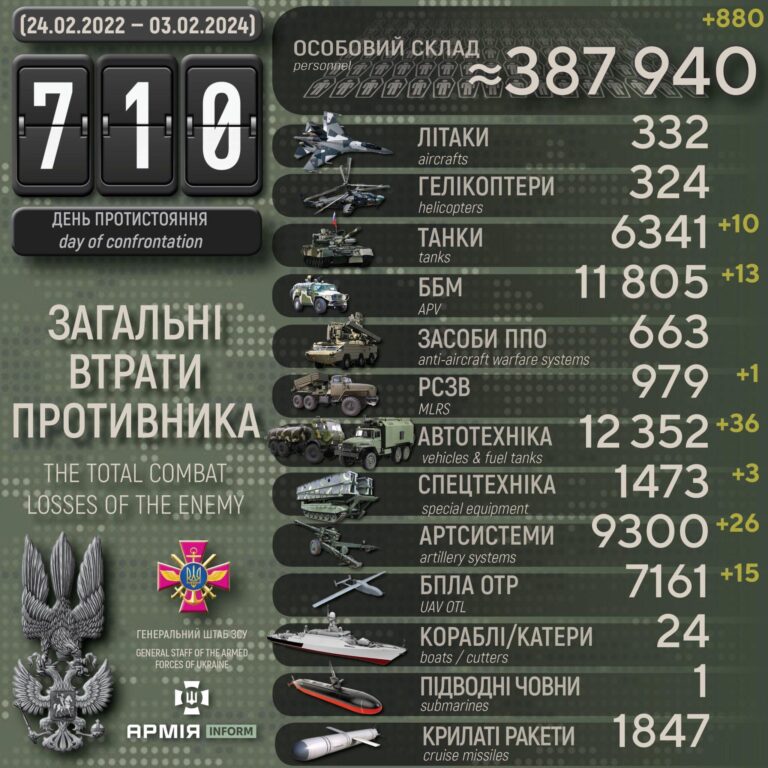 Ukraina relvajõud: venelased tungivad edasi kogu rindejoonel, Avdiivka on suurima rünnaku all (77) ja 4 vene poole edenemist tuvastas ning vastukaaluks ka 4 Ukraina edenemist. Pole ükski öö Ukraina asulates rahulik ja päris murevaba pole ka Venemaal, jälle üks naftainfra objekt Voroneži lähistel põleb. Täna öösel asus USA aktiivselt pommitama Süüriat ja Iraani.