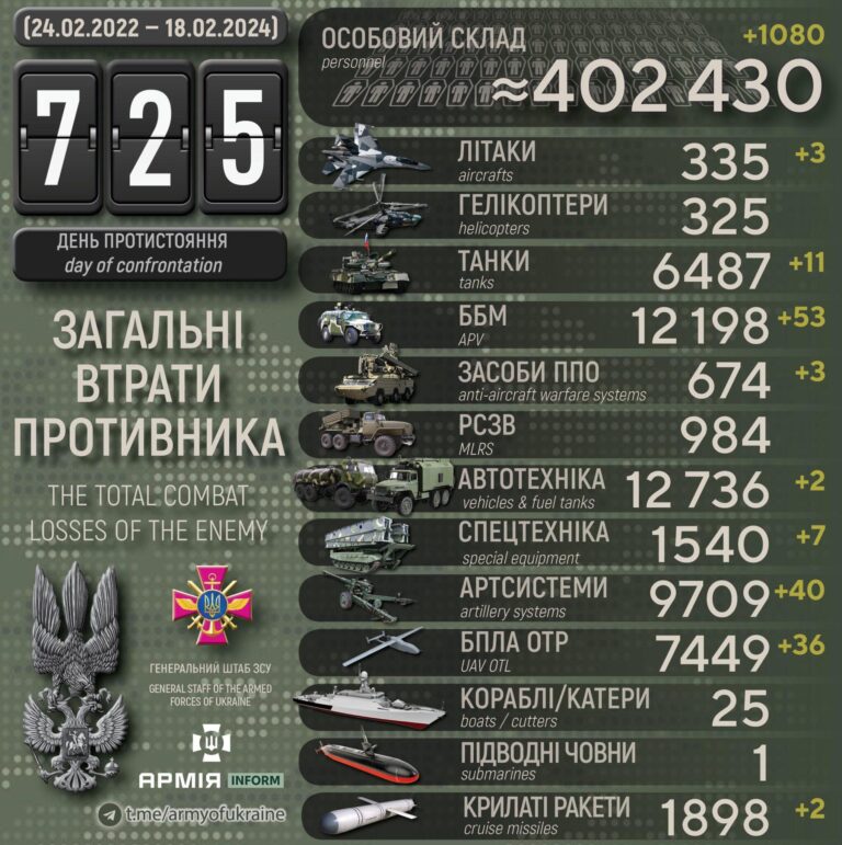 Avdiivka jäeti täies ulatuses maha, kolm vene lennukit alla lasti, kurtmisi tuli lausa viiest Venemaa oblastist, droone öösel ikka lendas, kokku 82 vene poole rünnakut.