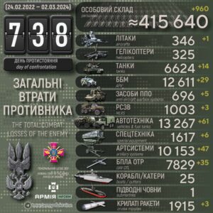 Vastase kaotused. Allikas: https://armyinform.com.ua/