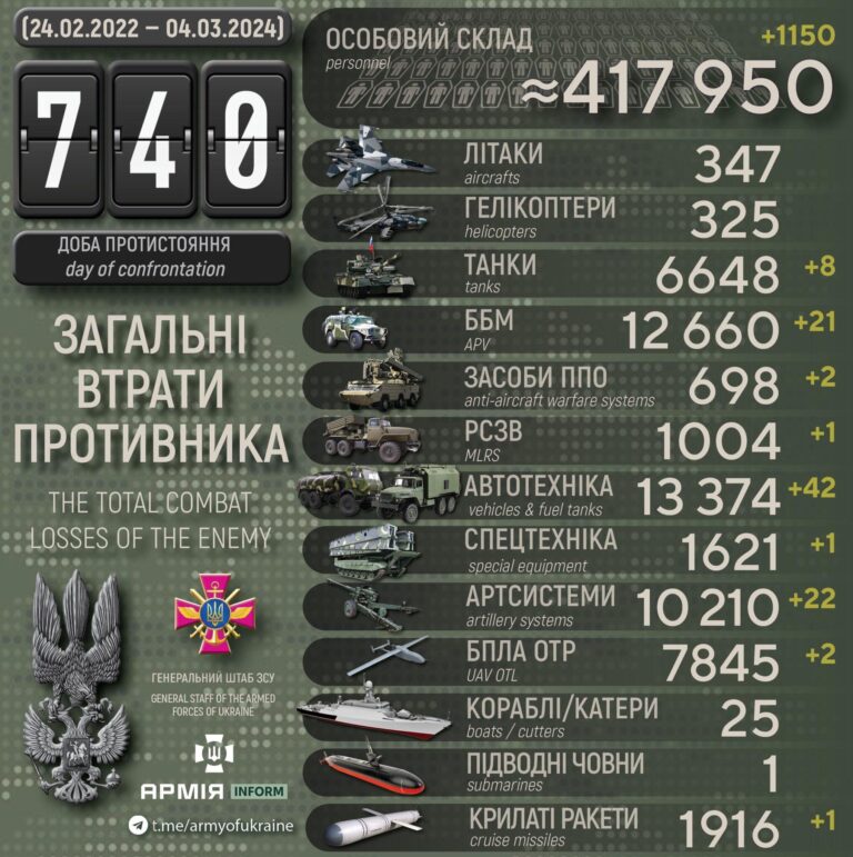Mitmel rindelõigul on tõusnud vene tankide T-90 kaotused ehk siis parim vene tehnika on põllule toodud ja pisu loodab, et miskit märk suurest püüdlustahtest putinile presidendi kohale „tagasi valimisest” on seegi ja lihtsalt massi edasi saadetakse, et putini jaoks hästi silma paista ja kiitust saada, sest arvatavalt algab uus peatne autasustamiste laine…