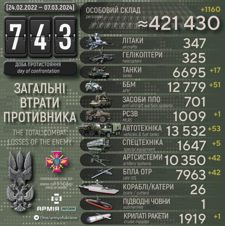 6. Donetsk: suurem vene poole edenemine Avdiivka ümber on seni pidama saadud. Ukrainal on õnnestunud Berdõtši, Orlivka ja Tonenke läänepiiril süveneda ning kindlustada ajutine tugev kaitseliin. Eile küll suutis vene pool Orlivka külast edelas kaks metsariba (330m ja 500m) põldude vahel enda kontrolli alla saada aga siit lääne pool asuv veekogude vöönd peaks selle suunalise liikumise peatama. Tuli ka vene poole teateid, et Ukraina on asunud vasturünnakuid tegema nii soomukite, tankide kui kuni rühma suuruste üksustega ning rindejoonel hallis alas käivat mõned possad käest kätte.