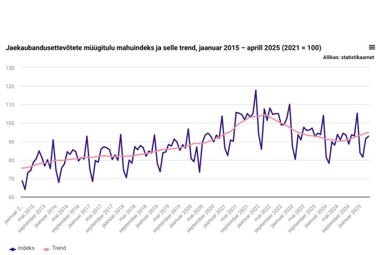 Statistikaamet: Aprillis jaekaubanduse ettevõtete müügimahu kasv kiirenes