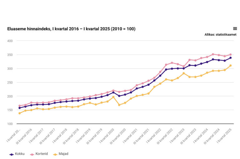 Korterite hinnad tõusid esimeses kvartalis võrreldes 2024. aasta sama ajaga 2,7% ja majade hinnad 8,9%.