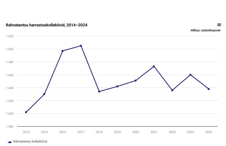 Andmetest nähtub, et kui koorilauljaid oli kümme aastat tagasi kõige rohkem, siis rahvatantsukollektiive oli 2014. aastal viimase kümne aasta võrdluses kõige vähem (1402). Pärast seda on rahvatantsukollektiivide arv küll kõikunud, aga näiteks koroonakriisi alguses see ei langenud, vaid hoopis tõusis.
