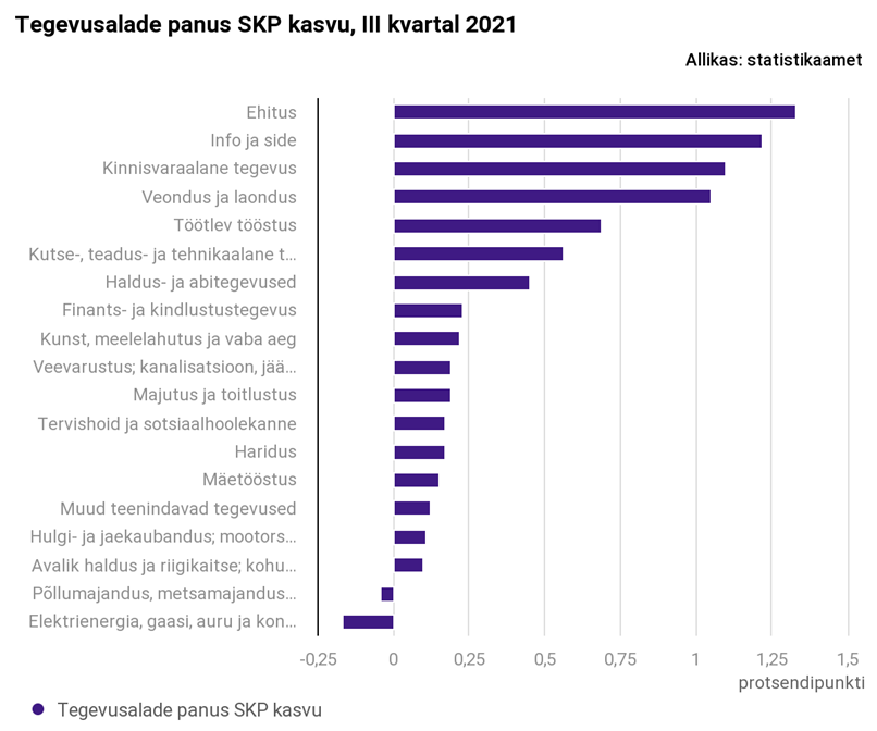 Statistikaameti juhtivanalüütik Robert Müürsepa sõnul vedasid majanduskasvu ehituse, info ja side, kinnisvaralase tegevuse ning veonduse ja laonduse tegevusalad. Samuti näitasid positiivseid tulemusi töötleva tööstuse ning kutse-, teadus- ja tehnikaalase tegevuse valdkonnad. „Viimastes kvartalites on majandusel läinud küll hästi, aga kõik tegevusalad ei ole veel pandeemiaeelset taset saavutanud. Enim kriisis kannatanud majutus ja toitlustus jääb 15 protsenti maha kahe aasta tagusest tasemest, ka töötleval tööstusel on veel veidi taastumise suunas minna,“ nentis Müürsepp.