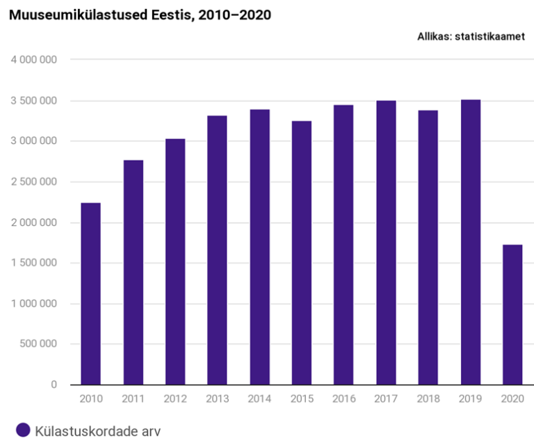 Statistikaamet: Muuseumikülastuste arv langes aastaga üle kahe korra