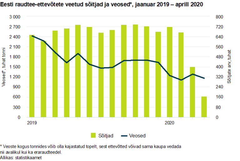 Aprillis vähenes kaubavedu raudteel 1,16 miljoni tonnini. Võrreldes 2019. aasta sama kuuga kahanes kaupade vedu raudteel rohkem kui neljandiku võrra. Vähenemist mõjutas enam riigisisene kaubavedu, kus toimus võrreldes mulluse aprilliga 52-protsendiline langus, kuid ka rahvusvahelised veod vähenesid 9 protsendi võrra.