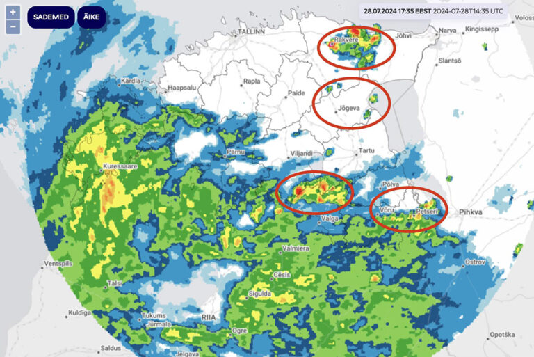 Avaldatud: 28 juuli, 2024Sünoptik Kairo Kiitsak annab teada, et vihm on Lõuna-Eestis juba kohal. Lõunast läheneva laussajuala ees käib rünksajupilvede areng. Need annavad tugevaid vihmavalinguid ja põhjustavad kohati äikest.