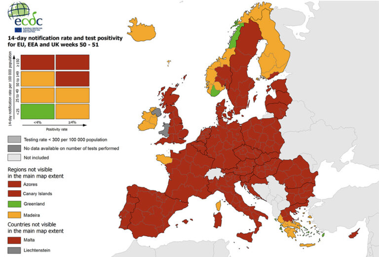 Siin on Euroopa ülevaatlik koroonatabel eelmise kahe, 50-51. nädala andmete põhjal: