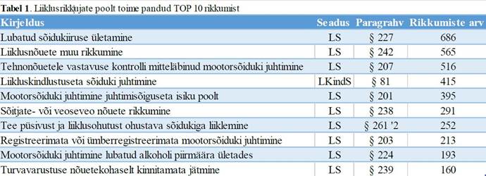 Rikkujate poolt pandi vaadeldava perioodi jooksul toime 4 911 liiklusalast rikkumist. Ligi 15 protsenti kõigist rikkumistest on olnud kiiruse ületamised. Kõige suurem ühele inimesele määratud rahatrahvide summa on 3000 eurot.