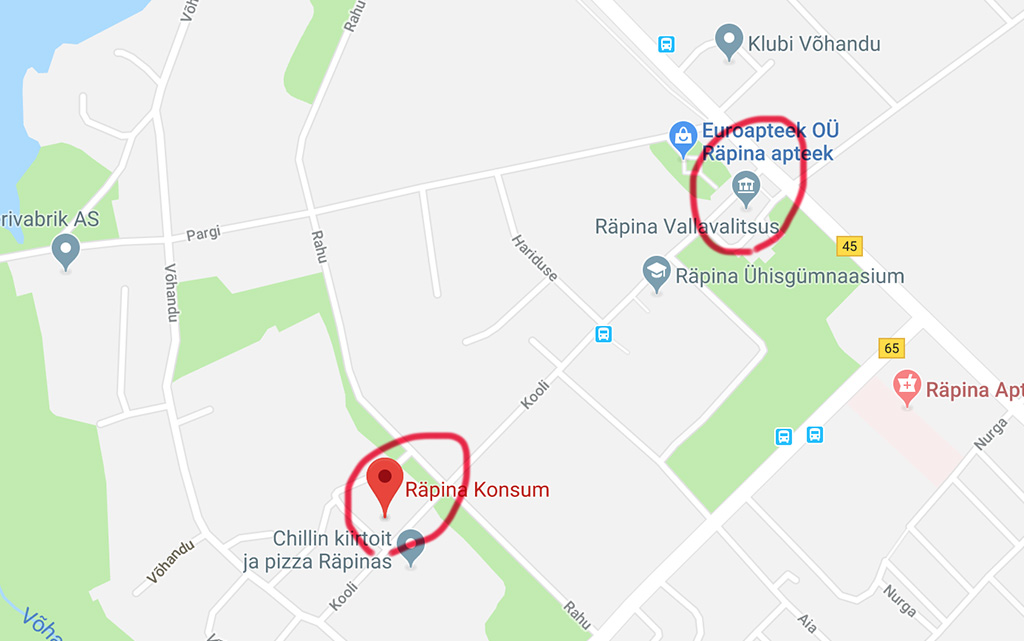 Vallamajast Konsumi juurde on ligi 500 meetrit maad.