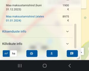 Näide maamaksu tõusust Eestis 2 ha põhjal. Kuvatõmmis
