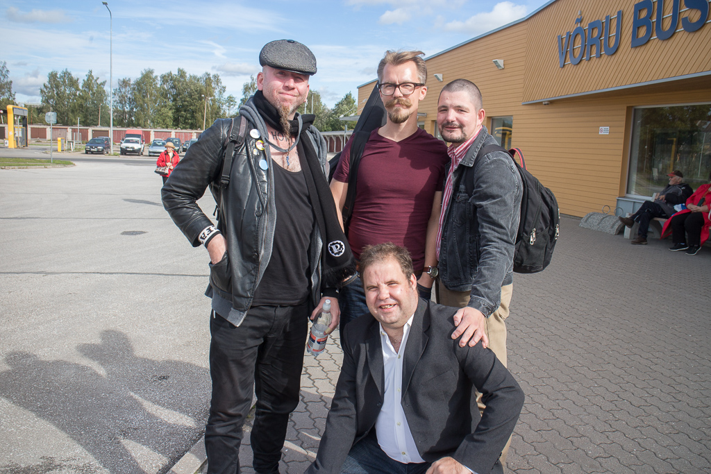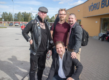 Ülal pildil Tallinna luulestaarid eile keskpäeval Ränduri külalistemajas keha kinnitamas, Rooste näpp on veel terve ja all pildil külalised koos mitteametliku mänedžeri Rainer Gapfaufiga Võru bussijaamas.