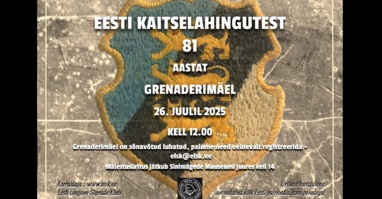 Avaldatud: 23 juuli, 2025Sel laupäeval 26. juulil mälestatakse Sinimägede lahingutes 1944. aastal Eesti eest langenud sõdureid.