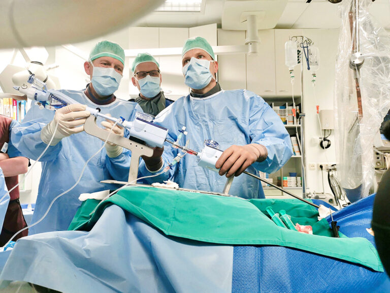 Protseduuri viisid läbi kardioloogid dr Alar Irs ja dr Kerli Lindlaan ning anestesioloog dr Susanna Kaljurand koos angiograafia ja anestesioloogia osakonna õdedega. Meeskonda kuulusid ka dr Toomas Hermlin, kes on kliinikumi angiograafiaosakonna juhataja ja kateetrikaudse südameklappide ravimise suurima kogemusega arst Eestis ning interventsionaalkardioloog dr Jacob Odenstedt Sahlgrenska Ülikoolihaiglast (Göteborg, Rootsi).