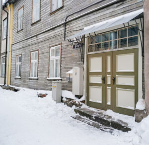 Restaureeritud uks ja varikatus Kooli 40. Foto: Tartu LV