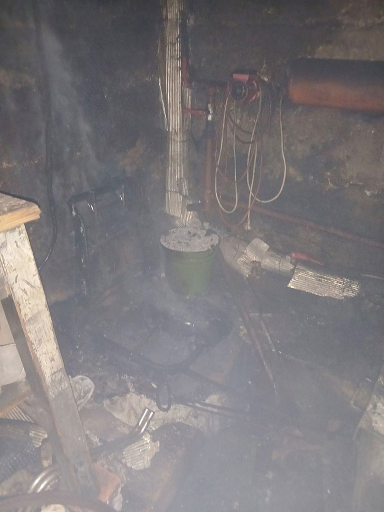 Kaks elanikku läksid hoonest välja. Põlesi katla ümber ladustatud põlevmaterjal, mis tõenäoliselt süttis tuha hoiustamiseks mõeldud plastämbrist.