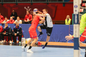 Alfred Timmo viskas Tšehhi võrku kaks väravat. Foto: Helin Potter/ Eesti Käsipalliliit