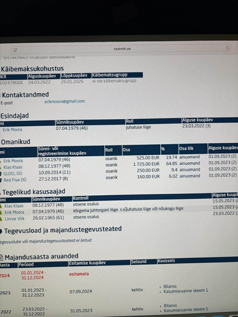 - Fitmal ClimaCash OÜ on viimane aruanne esitamata. Allikas: teatmik.ee