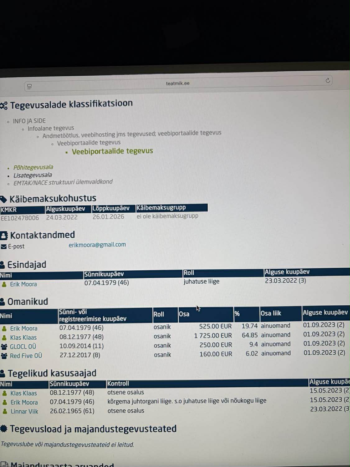 ClimaCash OÜ juhtkond. Allikas: teatmik.ee